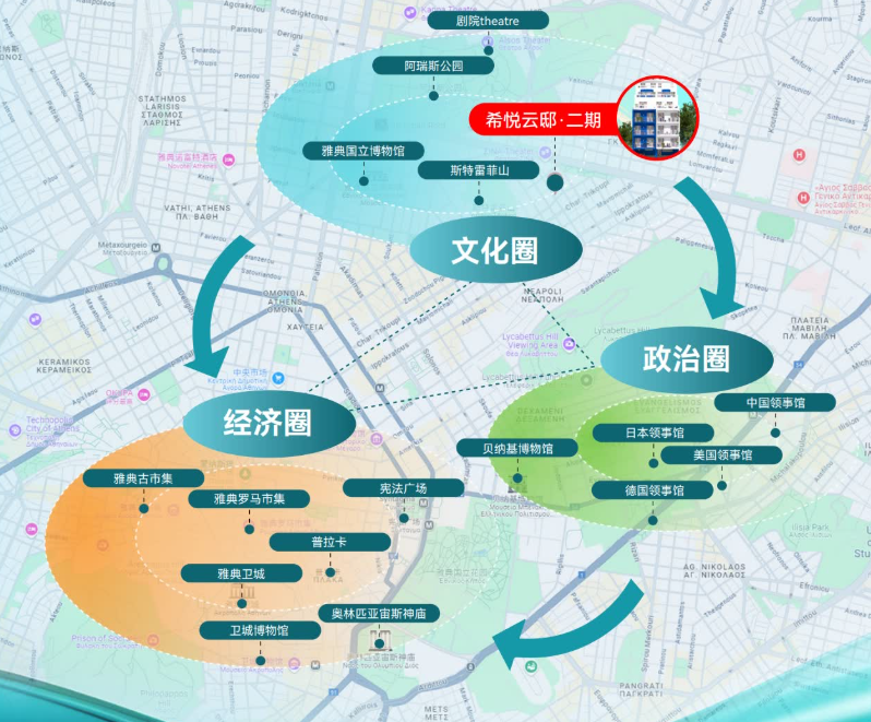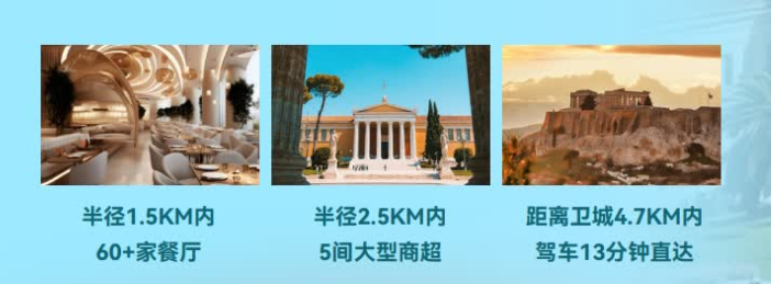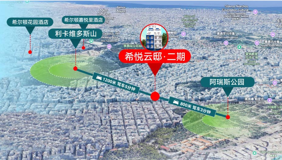 希悦云邸·二期雄踞雅典文明腹地核心,驾车3分钟直达蕴藏千年历史的阿瑞斯公园,5分钟畅抵利卡维多斯山巅观景台,独享自然与文明双重稀贵馈赠。其坐拥卫城、博物馆等顶尖文旅地标汇聚的 2公里黄金辐射圈,常年吸附全球高净值客流,铸就不可复制的恒产价值与永续文旅动能。